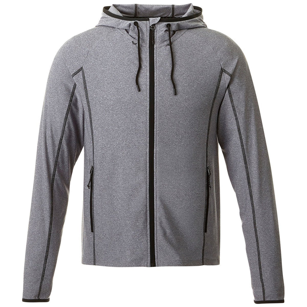 The logoed Elevate Men's Medium Heather Grey Kaiser Knit Jacket is a delightful mix of comfort and style. Four vibrant colors are yours for the choosing, allowing you to find the ideal color tone to match your company logo perfectly. The embroidery jacket has welcome features such as a comfortable textured jersey knit, streamlined fit, attached hood with drawstrings, two outer zippered pockets and interior pocket for keeping items extra safe. Place your corporate logo on the outside of the jacket, which will make a great gift at recruiting events and trade shows.