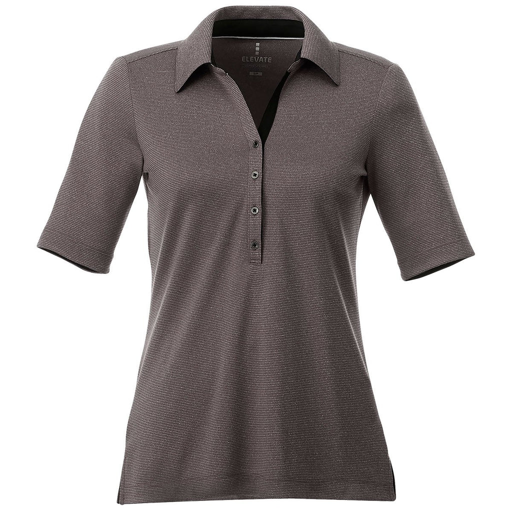 The Elevate Women's Heather Charcoal Skara Short Sleeve Polo combines comfort and style in one. The custom double-knitted four-button polo shirt comes complete with cooling and wicking aspects, UV protection, shaped seams and a tapered waist. Three different color choices make it easy to pick a polo shirt which will work well with your custom embroidery logo. Purchase this women's polo shirt for corporate apparel or to have on hand to distribute as gifts at your upcoming golf events or trade shows. Not only will you be handing out a lovely clothing item, but it will have your signature logo on it as well.Corresponding Men's Style: Elevate Men's Heather Charcoal Skara Short Sleeve Polo