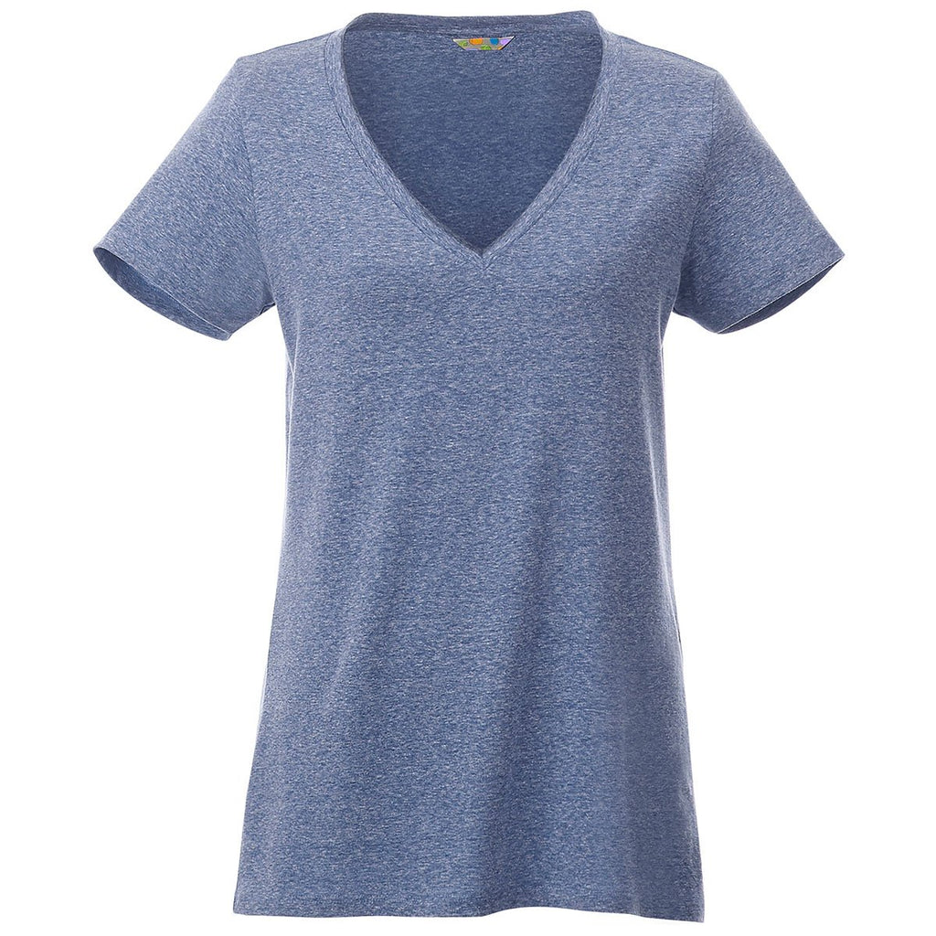 The company logo Elevate Women's Invictus Heather Canyon Short Sleeve Tee offers comfort and style in one lovely t-shirt. The v-neck tri-blend t-shirt features a comfortable fit with built-in UV protection (UPF 40+). Six different colors are available with this stylish t-shirt, which also has a tapered waist and shaped seams, for the ultimate flattering fit. The v-neck t-shirt can be adorned with a screen print company logo and handed out to employees as corporate apparel or given away at upcoming recruiting events, so your company name is on the minds of all who wear the t-shirt and see it in a crowd.Corresponding Men's Style: Elevate Men's Invictus Heather Canyon Short Sleeve Tee