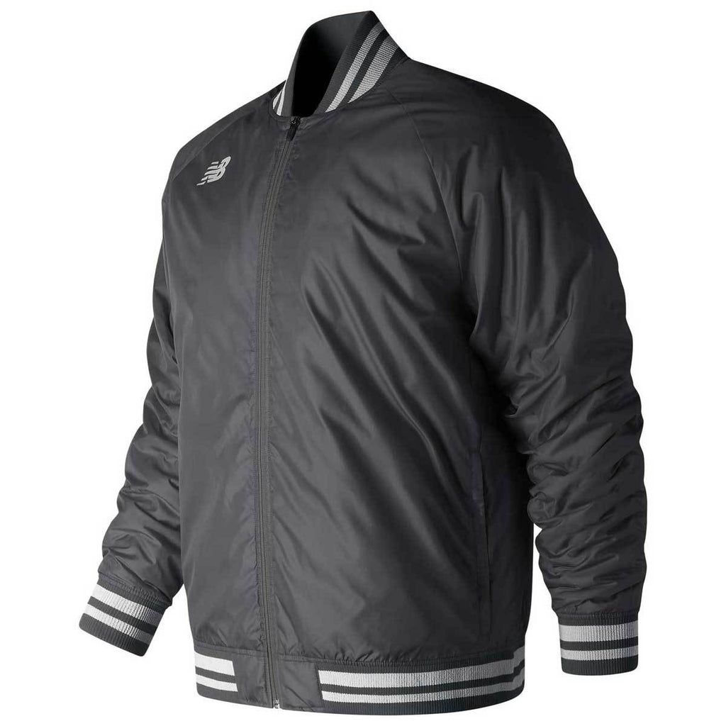 Coach, play, or just enjoy the game in a custom New Balance Men's Team Black Dugout Jacket in multiple color options. The classically designed 100% polyester woven shell jacket has a synthetic fill in a relaxed fit with a rib knit collar, cuffs, and waistband. The dual stripes on the collar, cuffs, and waist band create a look that is easily recognized. Add a company logo to this jacket to get noticed as you warm up or take the field at company events. Perfect as employee gifts that are fashionable and functional, these are a must-have item that will be well worn.Highlights