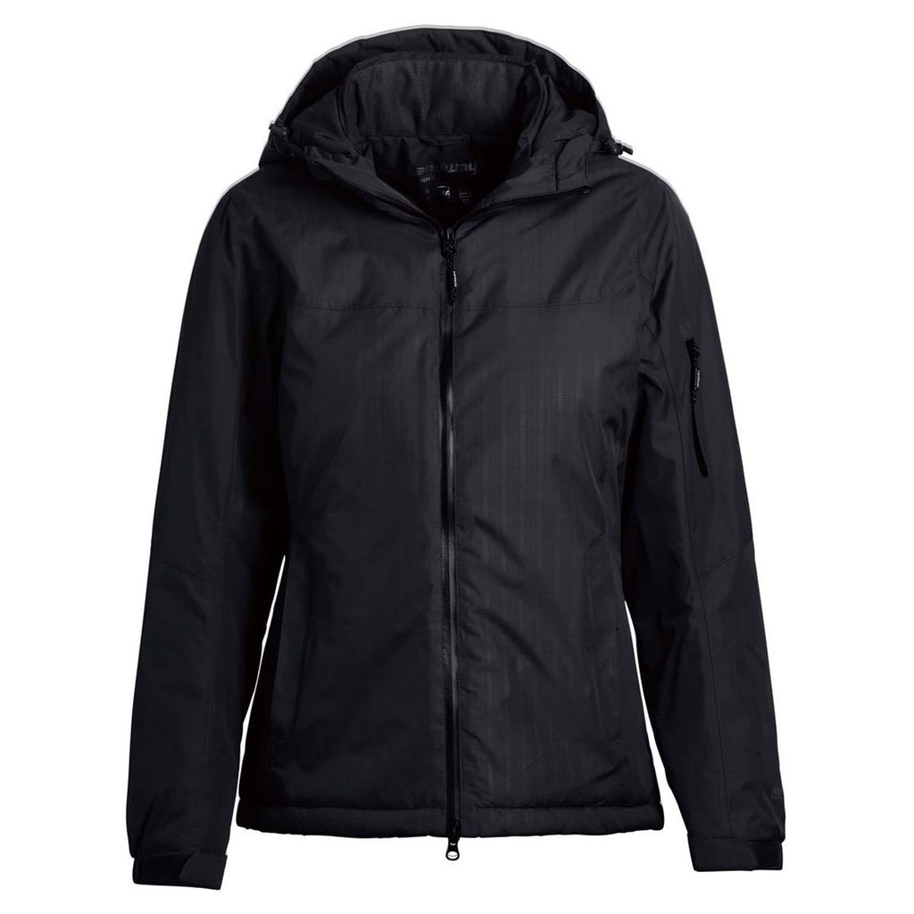 A coat of Durable Water Repellent turns the company logoed Landway Women's Black Sierra Thermal Shell Parka into the ultimate in outdoor corporate apparel. Whether you wade into a stream to catch fish or find yourself in a raging snow storm, the moisture resistant coating keeps you comfortably dry throughout the day. Rugged 100% ripstop nylon resists rips and tears to remain in pristine condition for years to come. Attach your corporate logo on the large imprint area to generate buzz for your products and services at business conferences. With a custom logo, you establish your company as a serious player in your industry.Corresponding Men's Style: Landway Men's Black Sierra Thermal Shell Parka