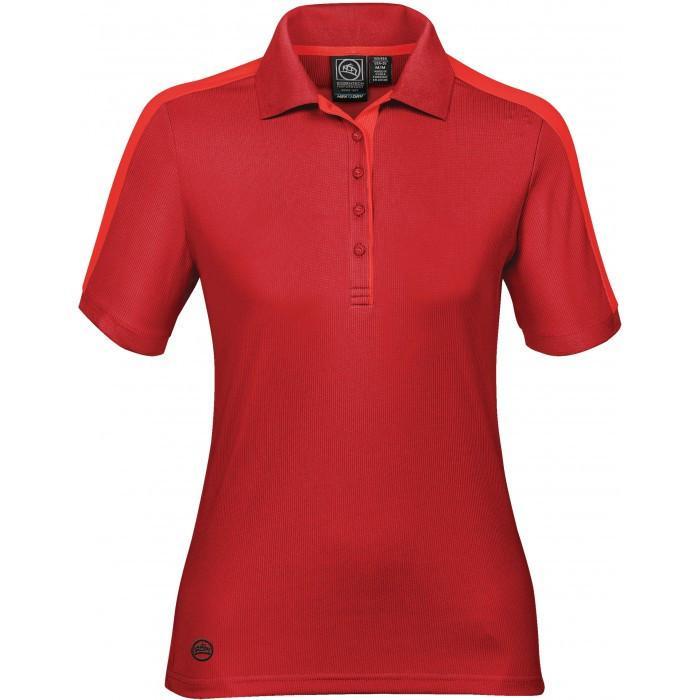 The Stormtech Women's Dark Red/True Red Shadow Polo isn't just a sporty shirt. It is a two-tone, eye-catching top with tons of style. Mechanical stretch ensures a comfortable, but modern fit and moisture-wicking materials keeps wearers dry even after long periods of wear. Add your company name or team logo and make it your next uniform or corporate giveaway item.Corresponding Men's Style: Stormtech Men's Dark Red/True Red Shadow Polo