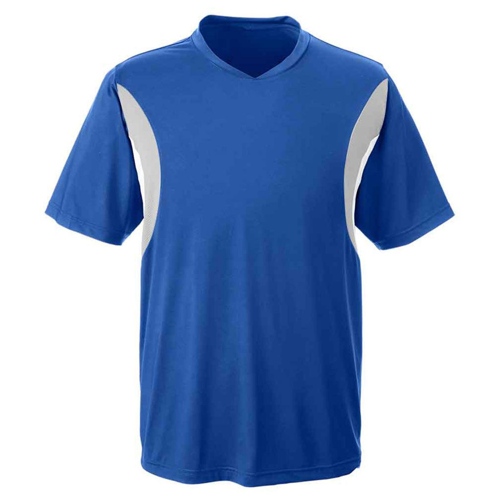 Whether you play in soccer league or just need a jersey to participate in a basketball pick-up game, the Team 365 Men's Sport Royal Short-Sleeve Athletic V-Neck Tournament Jersey is the right jersey for you. The mostly polyester jersey includes enough spandex to give you the movement flexibility you need to out maneuver the competition. Cationic dyes produce a superior bright design that attracts the attention of everyone who attends the big game. Take advantage of the attention by adding a custom logo that potential customers remember. Moisture wicking technology quickly removes perspiration to cool the skin.