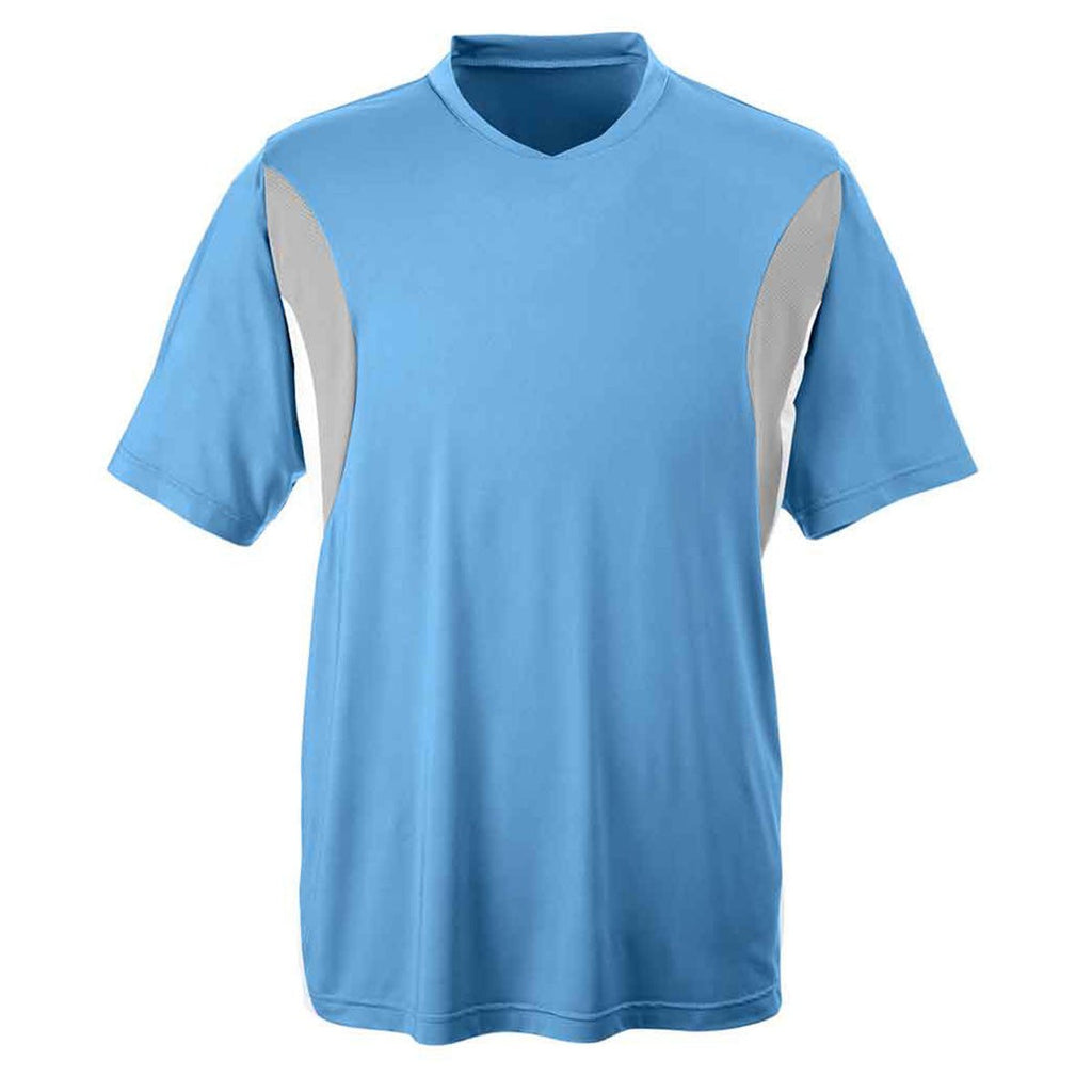 Whether you play in soccer league or just need a jersey to participate in a basketball pick-up game, the Team 365 Men's Sport Light Blue Short-Sleeve Athletic V-Neck Tournament Jersey is the right jersey for you. The mostly polyester jersey includes enough spandex to give you the movement flexibility you need to out maneuver the competition. Cationic dyes produce a superior bright design that attracts the attention of everyone who attends the big game. Take advantage of the attention by adding a custom logo that potential customers remember. Moisture wicking technology quickly removes perspiration to cool the skin.Corresponding Women's Style: Team 365 Women's Sport Light Blue Short-Sleeve Athletic V-Neck Tournament Jersey
