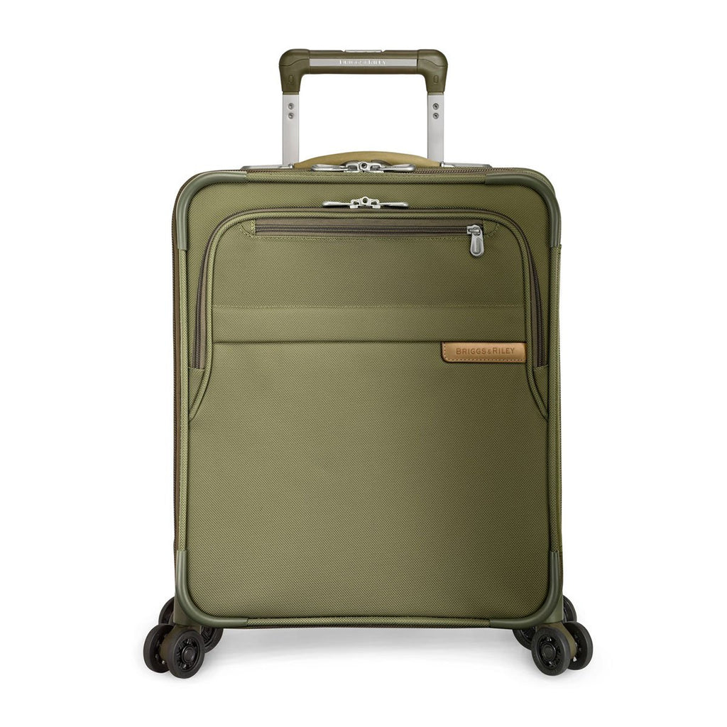 The Briggs & Riley Olive Baseline International Carry-On Expandable Wide-Body Spinner is perfect for the companies looking for a bag for both their domestic and international trips. Its short-and-wide design accommodates maximum luggage while the four wheels offer effortless navigation at terminals and beyond. Even when the bag allows you to pack everything in it, it can still fit in overhead compartments in flights.