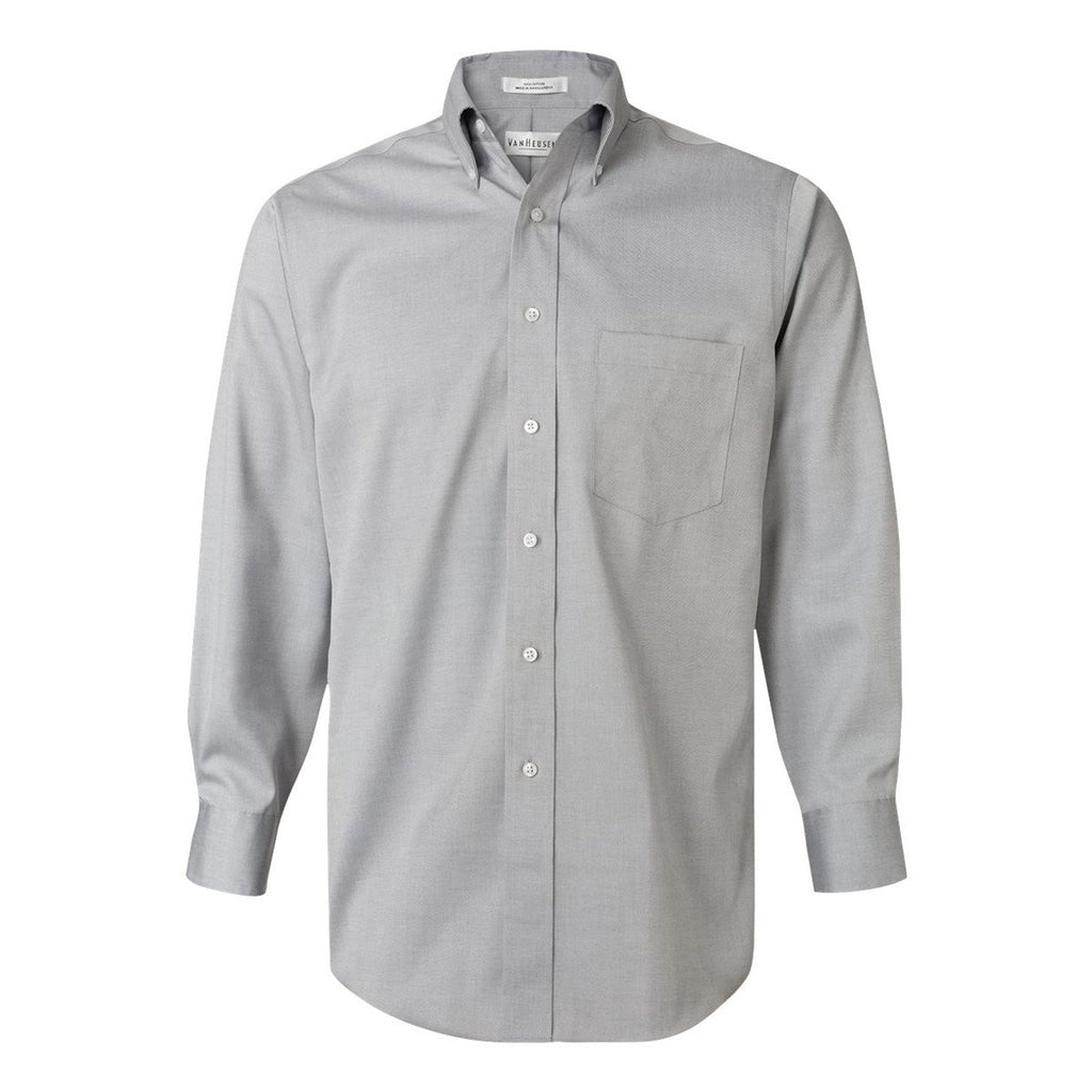 Van Heusen Men's French Grey Non-Iron Pinpoint Dress Shirt