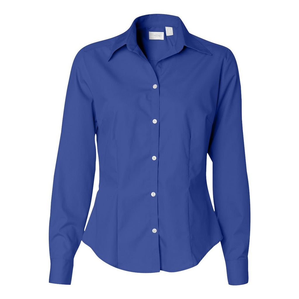 Want to look serious but feel comfortable? Want to project an image that says "I'm ready for anything" while wearing the clothes that actually feel that way? Then meet this Van Heusen Women's Ultra Blue Silky Poplin Dress Shirt. Don't let the word "silky" fool you. This shirt is strong and durable, ready for an entire week of work, ready to handle the dryer while giving you the convenience of a wrinkle-free option. The feminine silhouette, the spread collar, the double button barrel cuff? Mere details. Add your custom logo on the front for the only detail that matters: your brand.Highlights