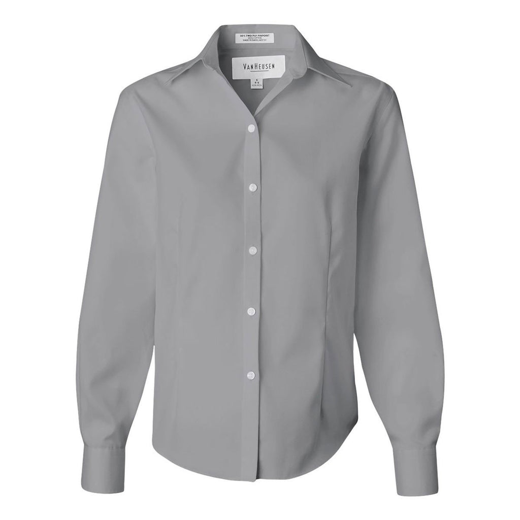 Van Heusen Women's French Grey Non-Iron Pinpoint Dress Shirt