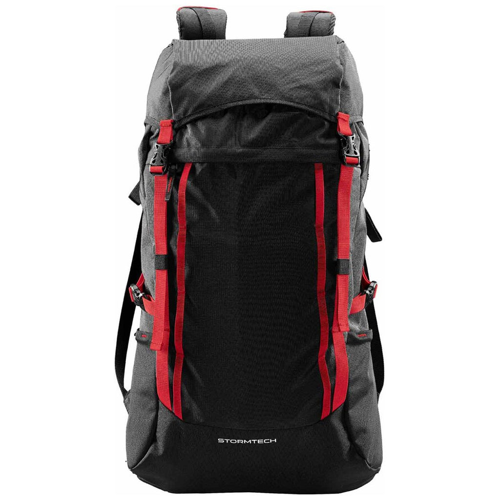 The custom Stormtech Black/Red Revelstoke Technical Pack will allow you to stay prepared no matter what the day throws your way. This day pack can be custom embroidered with your company logo or design to offer as corporate gifts or as prizes for the next company outing. If your employees must travel then make this part of employee apparel to store important documents and materials. The 40L day pack is lightweight with ergonomic padded shoulder and waist straps as well as lumbar support for comfort. A large inner compartment means plenty of storage whether hiking or travelling. Choose your favorite color combination and order today.Highlights