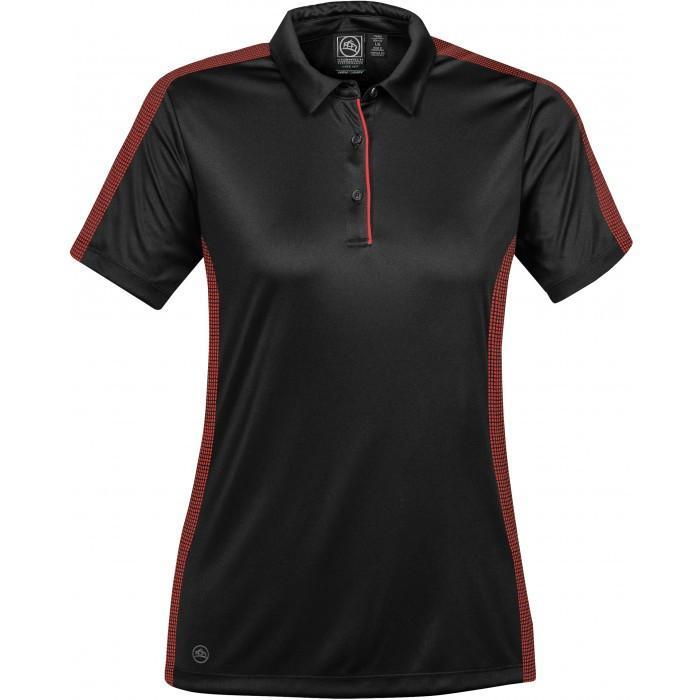 The Stormtech Women's Black/True Red Bolt Polo combines style and function to create a superior team uniform shirt. Moisture-wicking material helps keep you cool and dry. The matrix print on the upper sleeve and side panel draw the eye in and help your company name and logo stand out.Corresponding Men's Style: Stormtech Men's Black/True Red Bolt Polo