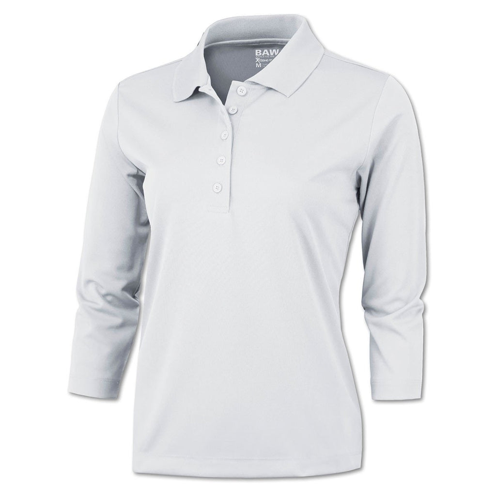 BAW Women's White Xtreme Tek 3/4 Sleeve Polo