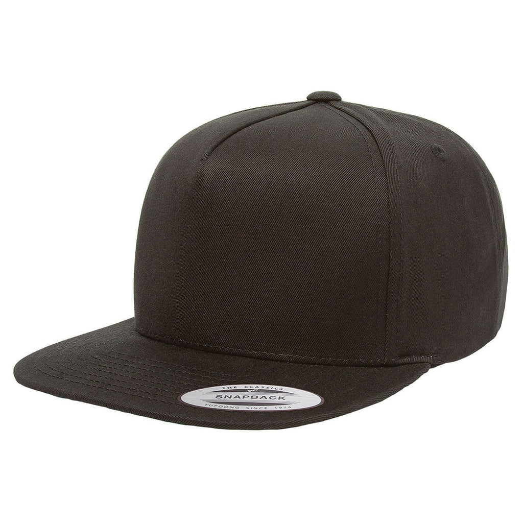 Twill is a very popular cap material for those wanting to put their custom logo on a quality product. The Yupoong Black Adult 5-Panel Cotton Twill Snapback Cap is a perfect example of this hot item. It features a five panel, structured, high profile design. There is eight row stitching on the flat visor and a 3 3/4" crown. It also has hard buckram backed front panels, four eyelets, and a green undervisor. A sure fit is ensured with an adjustable plastic closure. This snapback cap is available in six solid colors including white, royal blue, black, grey, navy, and red.Highlights