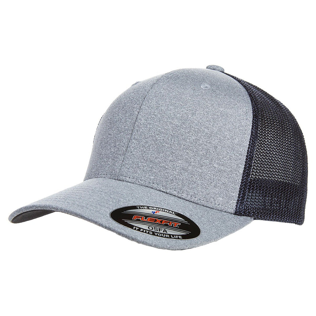 FlexFit Heather/Navy Adult Poly Melange Stretch Mesh Cap