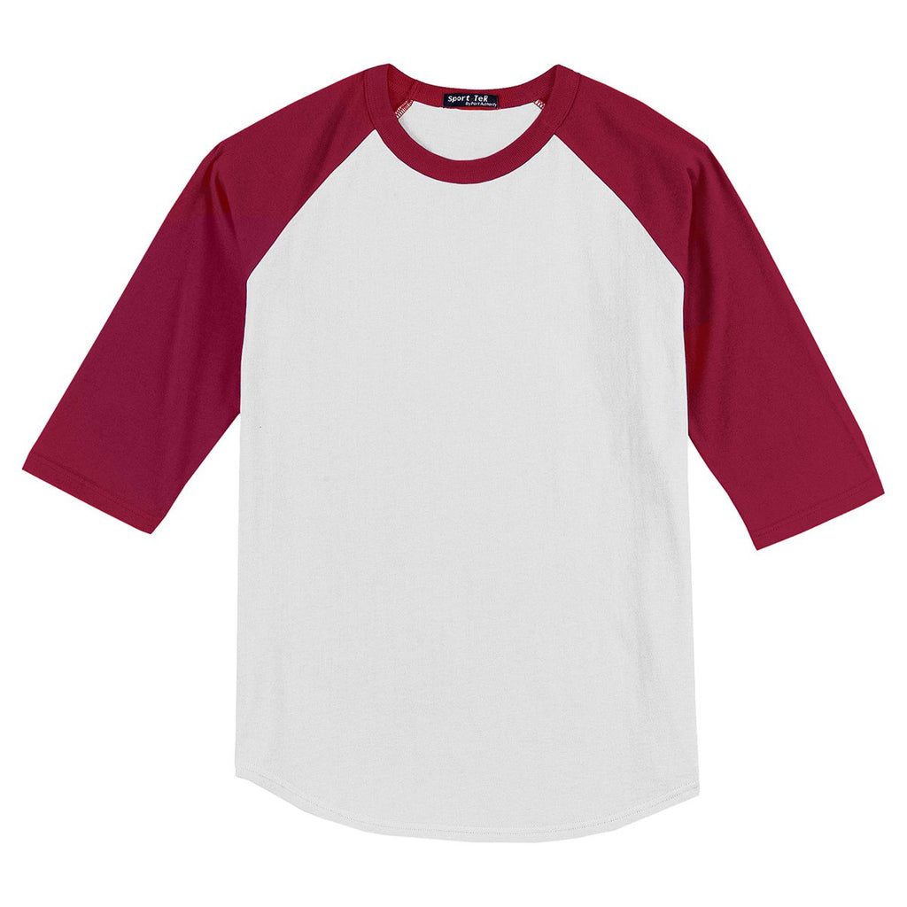 Sport-Tek Youth White/Cardinal Colorblock Raglan Jersey